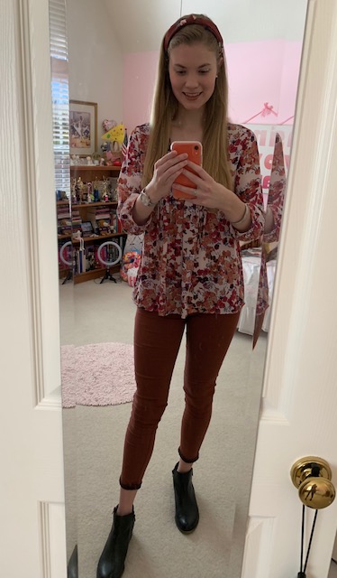 The next outfit I am going to share with you is, some autumn so this outfit I feel like is so perfect for fall. I got both of these pieces from TJ Maxx. I really like the colors and they jumped out to me when I saw them in the store. I have had this outfit for awhile but it is still my all time fav and I bet you can still find something like this as well. TJ Maxx has some of the best fall clothing in my opinion and I love shopping there for school. Which is usually where I wear this outfit and the headband tops-off the whole outfit. I always have to add that perfect accessory, don’t you?